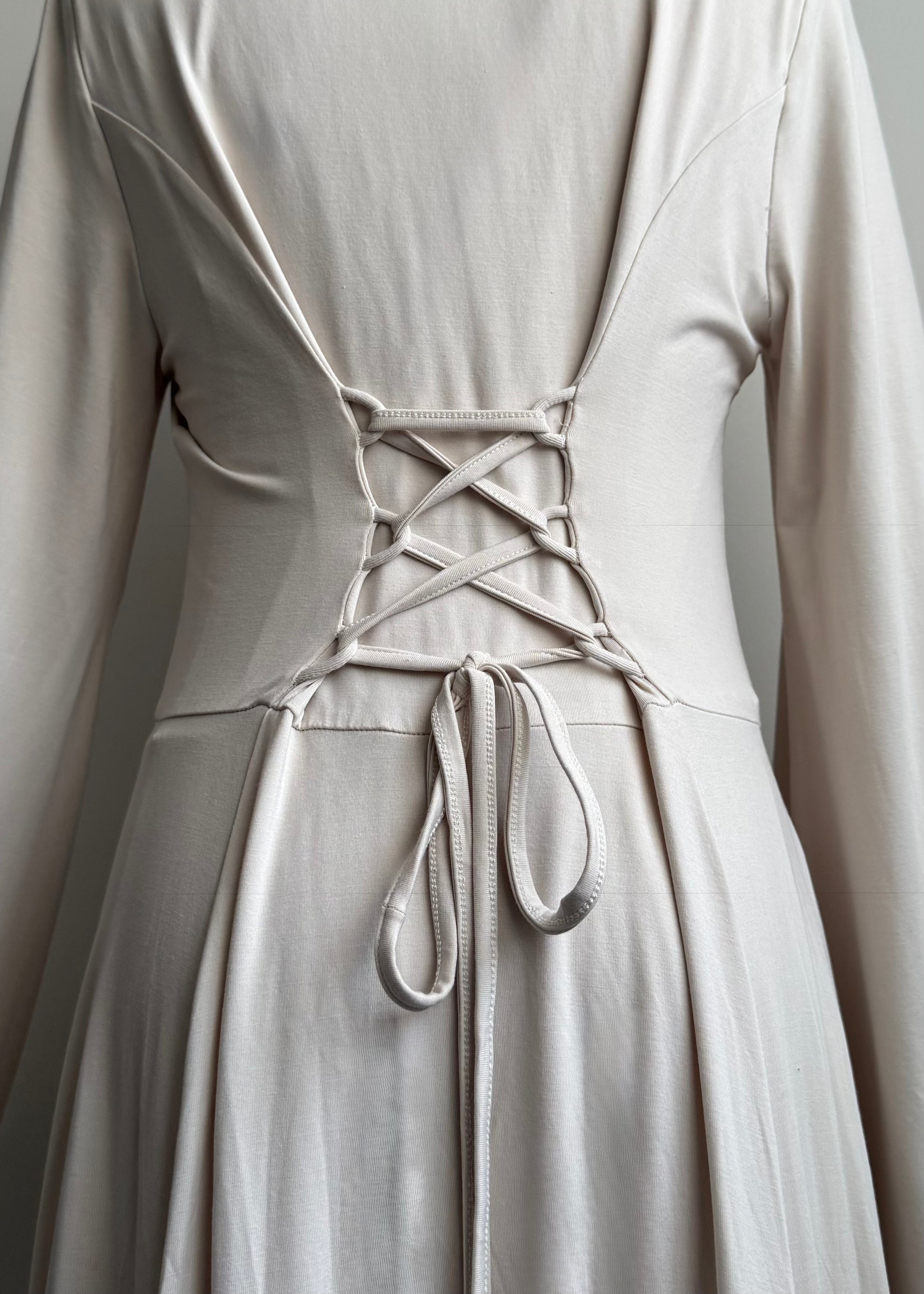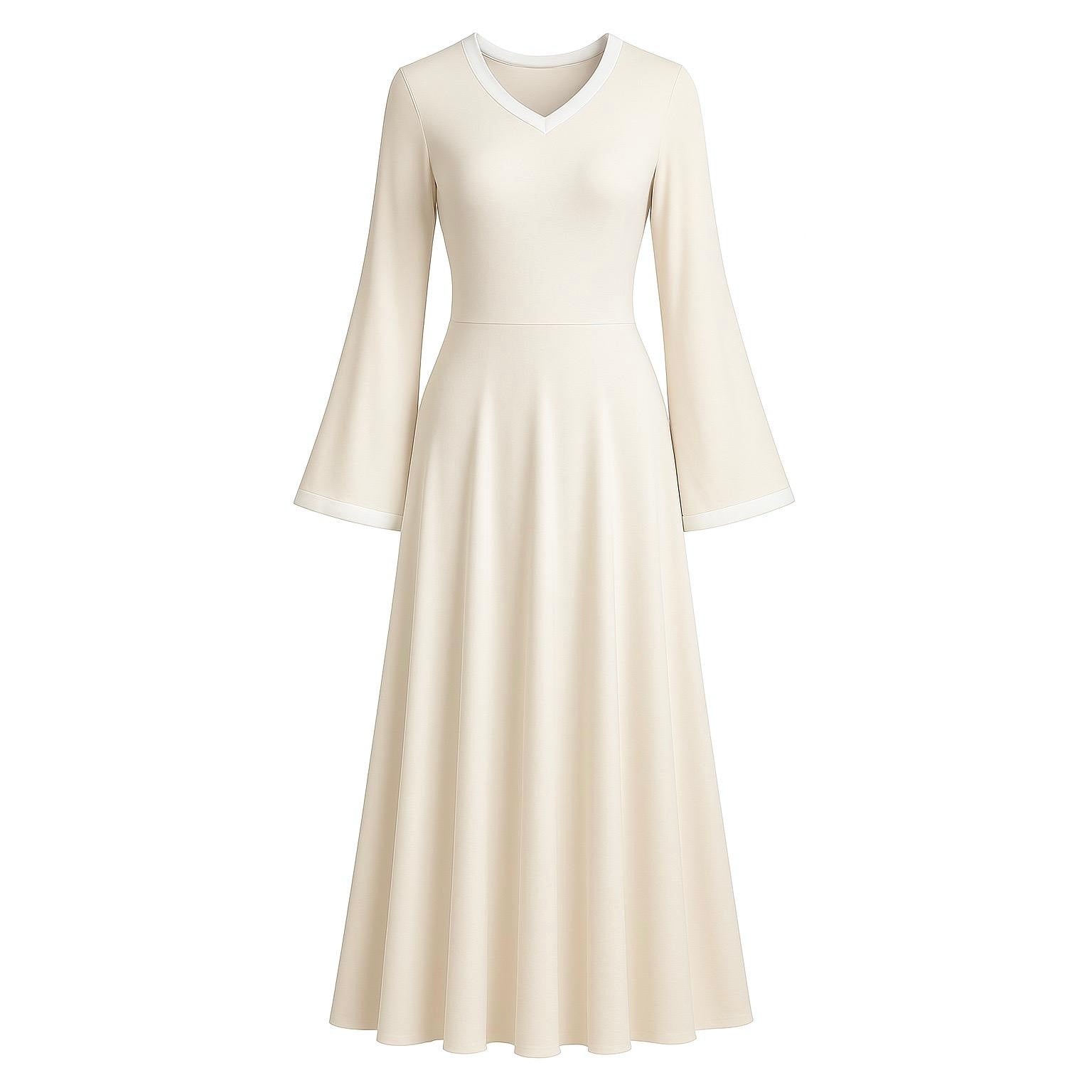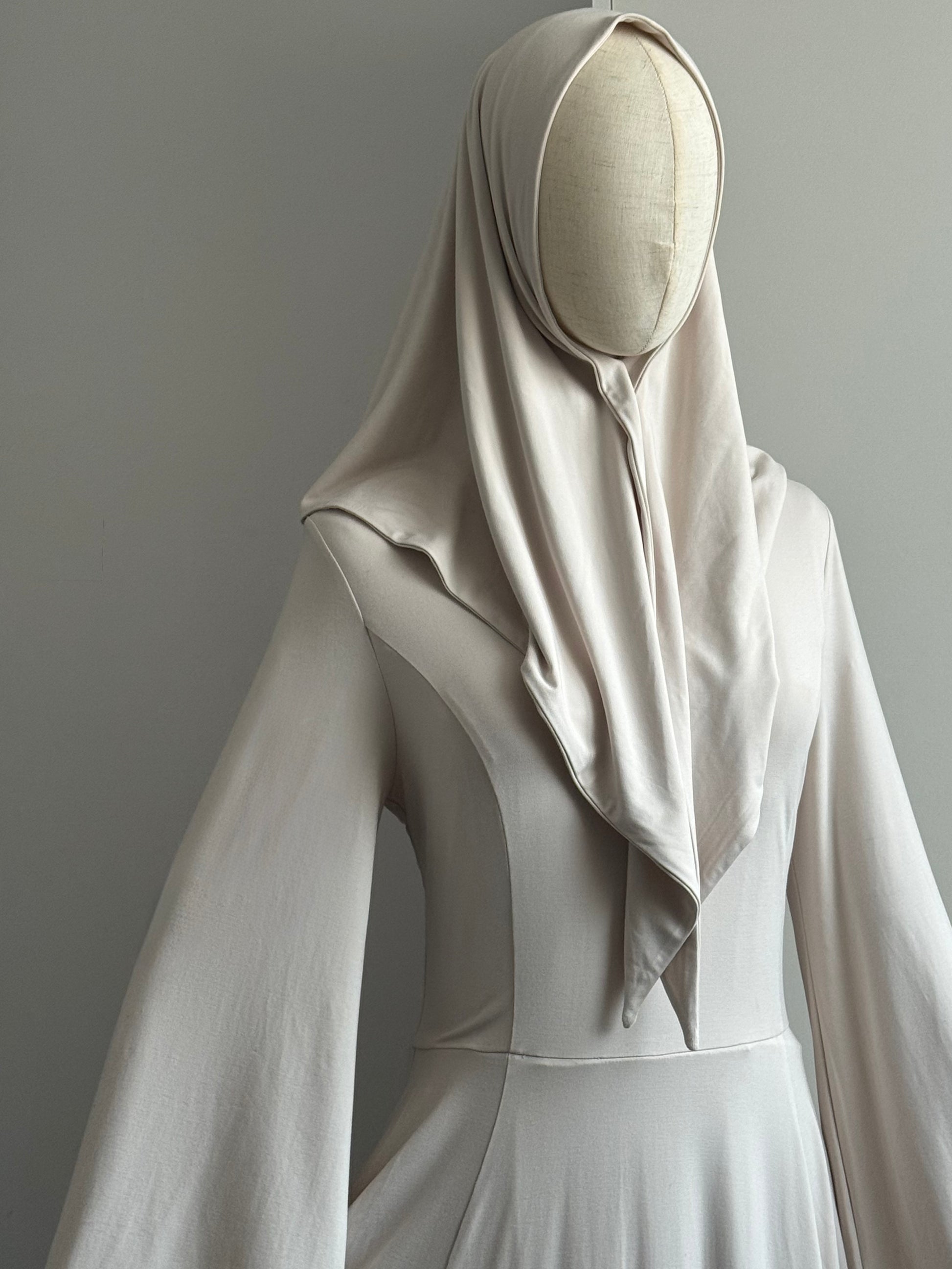Saint Alecia is our essential modest maxi dress, crafted with flowing fabric and a tailored silhouette that flatters all body types. Featuring a striking white contrast seam that elongates the figure, this piece is designed to make an understated yet bold statement.